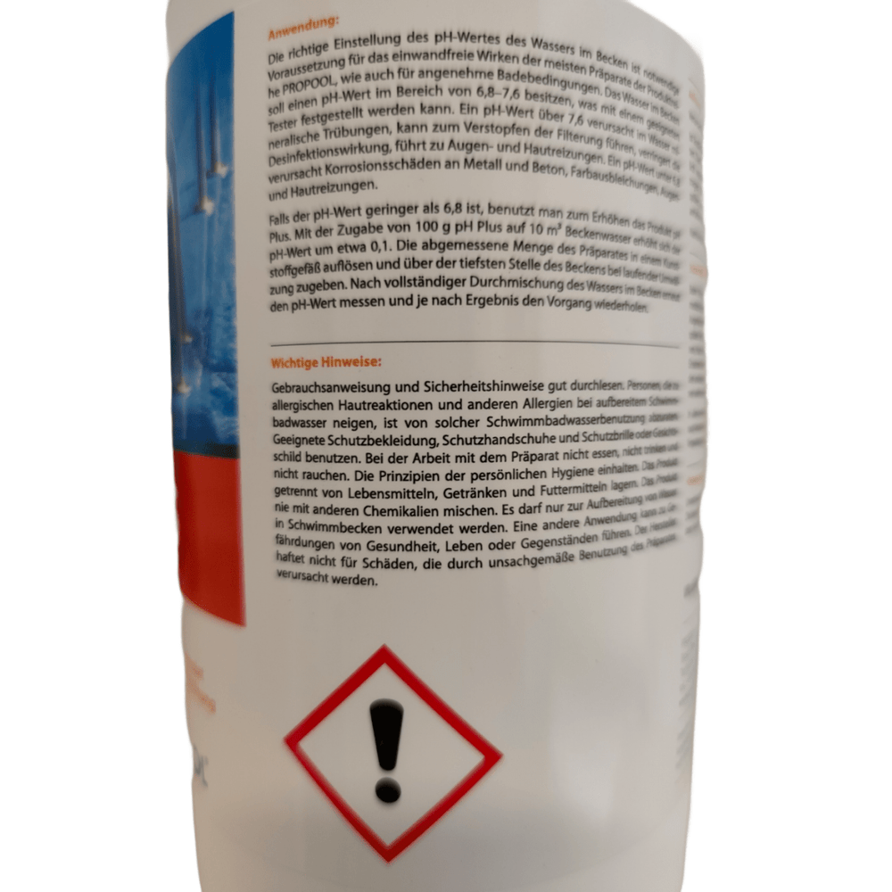Моля, винаги следвайте инструкциите за употреба и никога не смесвайте pH plus гранули с други химикали. Този продукт е предназначен изключително за пречистване на вода в плувни басейни и производителят не поема отговорност за щети, причинени от неправилна употреба.