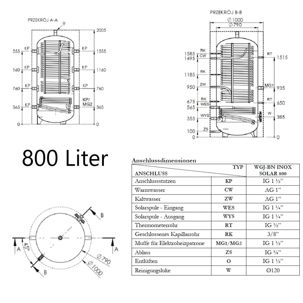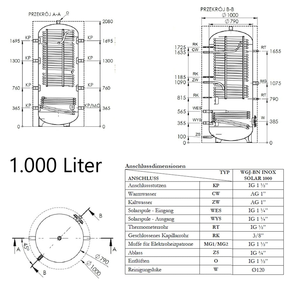 WGJ-BN INOX SOLAR je kombinovaný vyrovnávací zásobník pro ohřev vody a teplou užitkovou vodu s integrovanou topnou spirálou z nerezové oceli jako výměníkem tepla. Byl navržen pro integraci do systémů ústředního topení s kotli, tepelnými čerpadly nebo pro využití solárního tepla a umožňuje jak akumulaci topné energie, tak i nepřetržitý ohřev pitné vody.