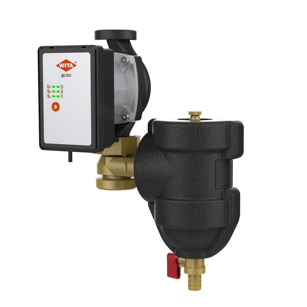 Vysoce účinný čerpací agregát WITA kombinuje pokročilou technologii s praktickými řešeními pro efektivní a spolehlivý provoz vašeho systému. go.tec Vysoce účinné čerpadlo zajišťuje výkonné a energeticky úsporné řešení čerpání, zatímco WITA-Trap MS L50 zaručuje optimální ochranu před kontaminací a poškozením. Společně tvoří perfektní duo pro moderní, nenáročný na údržbu systém vytápění, chlazení nebo solární systém.
