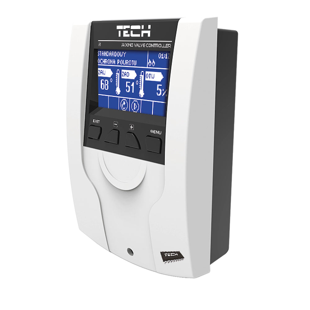 De TECH EU-i-1 blandeventilstyring kontrollerer en 3- eller 4-vejs blandeventil inklusive Ventilpumpe og opretholder pålideligt den ønskede fremløbstemperatur ved ventiludløbet. Det understøtter effektiv systemdrift. Vejrkompenseret styring (varmekurve), Ugentlig program samt samarbejdet med Rumtermostater (RS-kommunikation eller topunktskommunikation). Derudover beskytter styresystemet varmegeneratoren ved at Tilbagestrømningsbeskyttelse (mod for lave returtemperaturer) og valgfri kedelbeskyttelse (Overophedningsbeskyttelse).