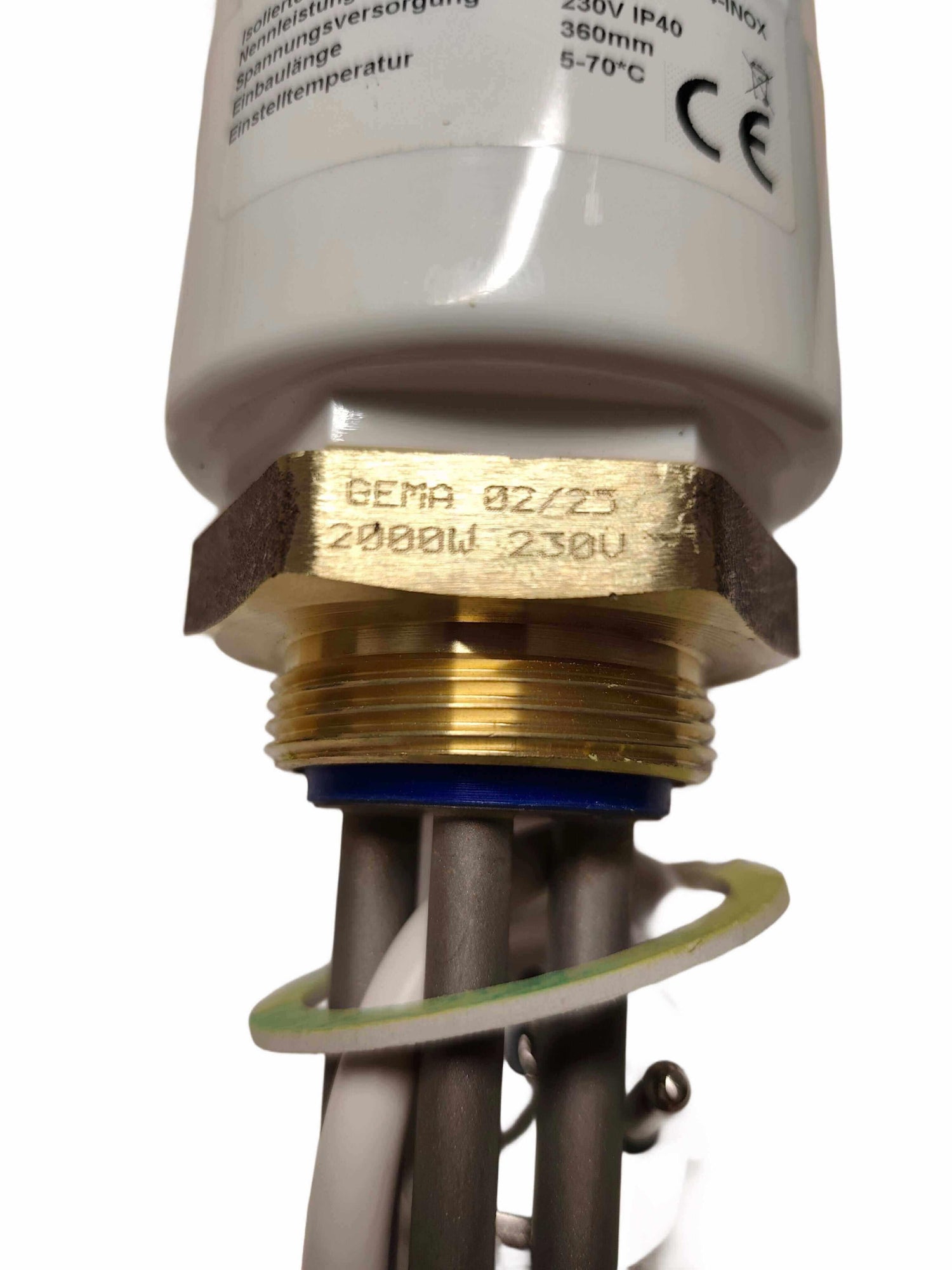 With an output of 1500 W or 2000 W and an immersion area of 360 mm, the heater offers excellent heating performance. Its precise design, with an 80 mm unheated zone and a standardized 6/4" threaded connection, allows for seamless integration into various systems.