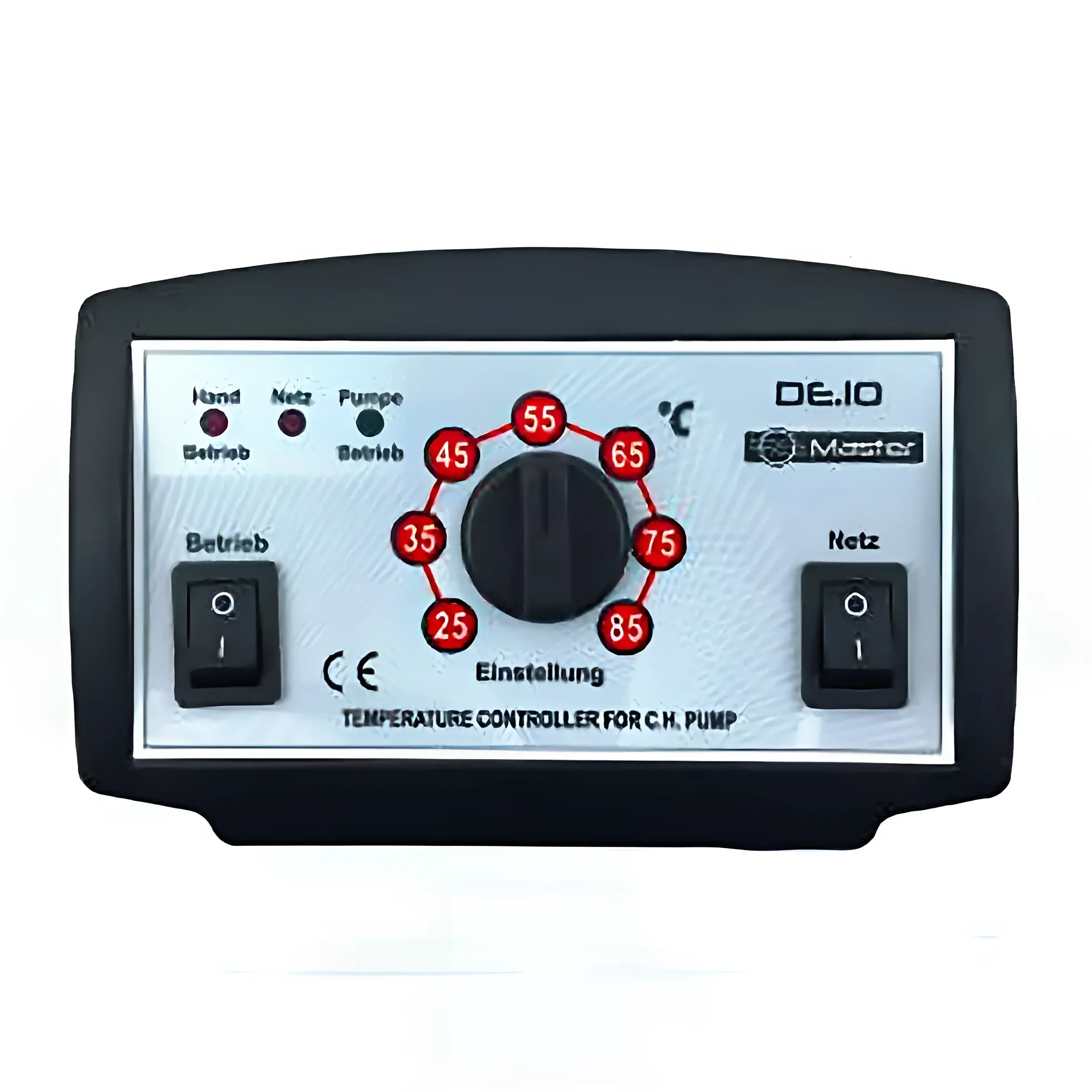 Il regolatore di pompa Master DE.10 consente un controllo preciso della pompa di circolazione o dell'aumento della temperatura di ritorno della caldaia. L'impostazione della temperatura è semplice grazie a una comoda manopola. Il regolatore accende la pompa non appena viene raggiunta la temperatura impostata e la disattiva automaticamente se la temperatura della caldaia scende di oltre 2 °C al di sotto del setpoint. Questa precisione garantisce che la pompa funzioni solo quando è effettivamente necessaria, garantendo un funzionamento efficiente dal punto di vista energetico e prolungandone la durata.