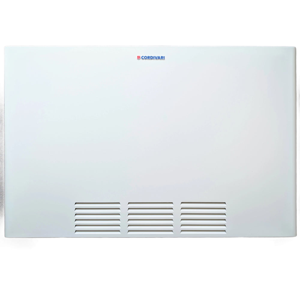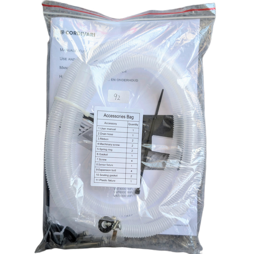 Contenuto della confezione: ventilconvettore, kit di montaggio (tasselli/viti), dima di montaggio, istruzioni per l'uso e la manutenzione. Imballaggio: scatola di cartone riciclabile, coperture protettive e imbottitura per un trasporto sicuro.