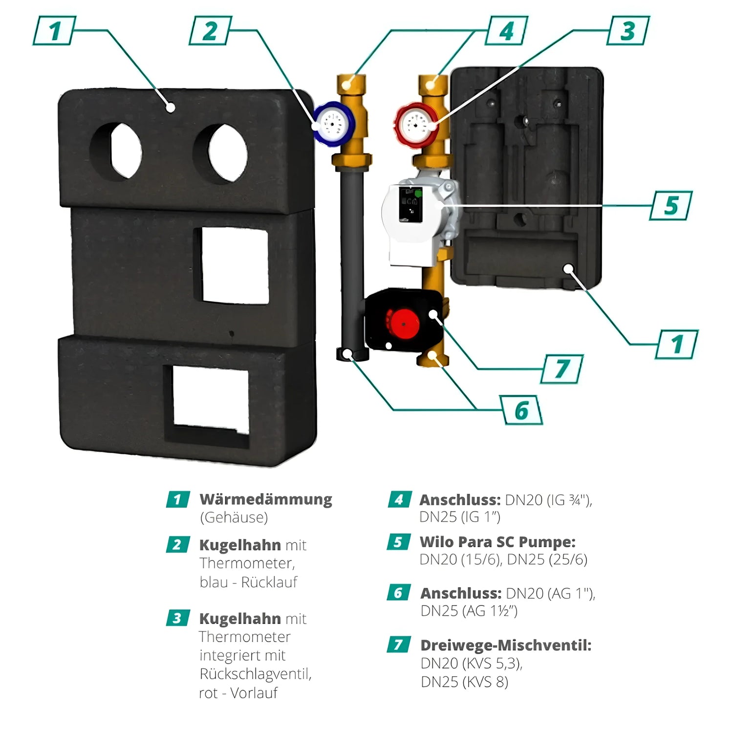 Dėl kompaktiško dizaino ir iš anksto sumontuotų rutulinių uždarymo vožtuvų integravimas į esamas šildymo, vėsinimo ar procesų šildymo sistemas yra paprastas. Termometrai tiekimo ir grąžinimo linijose visada rodo tikslius temperatūros rodmenis, o atbulinis vožtuvas tiekimo linijoje apsaugo nuo nepageidaujamo atbulinio srauto.