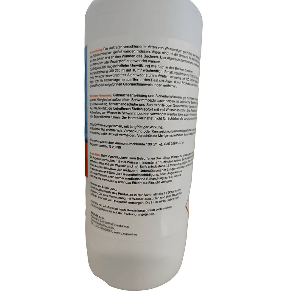 Aļģu kontrole droši iznīcina visu veidu baseina aļģes un to var viegli kombinēt ar aktīvā hlora un skābekļa produktiem. Tas rada efektīvu vidi, kas palēnina kaitīgo baktēriju augšanu, tādējādi veicinot ilgtermiņa tīru un higiēnisku baseina ūdeni.