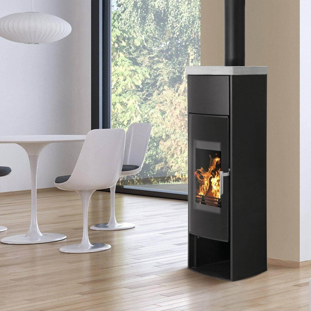 Kamienie akumulacyjne umieszczone nad komorą spalania pochłaniają część ciepła podczas spalania i oddają je z powrotem do pomieszczenia po wygaśnięciu ognia. Co więcej, elegancki piec o mocy 7 kW nie tylko ogrzewa pomieszczenie, ale także wspomaga system centralnego ogrzewania poprzez zintegrowany wymiennik ciepła.