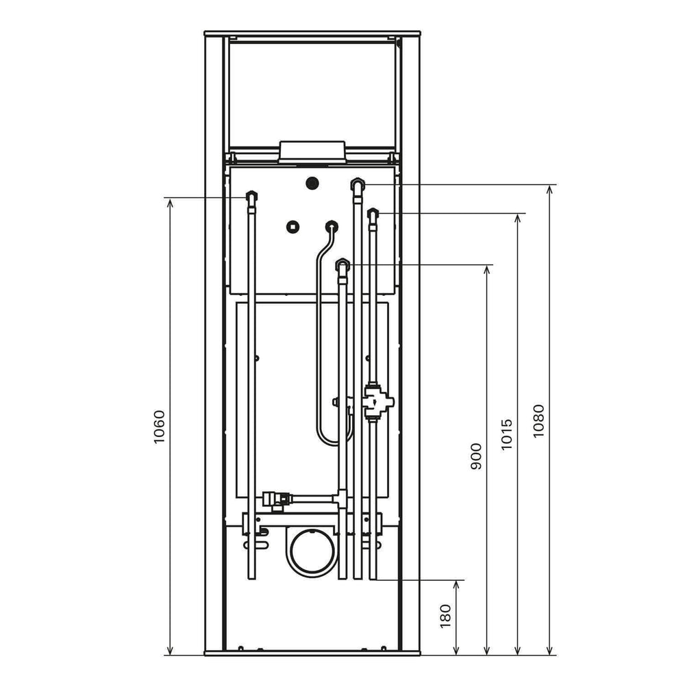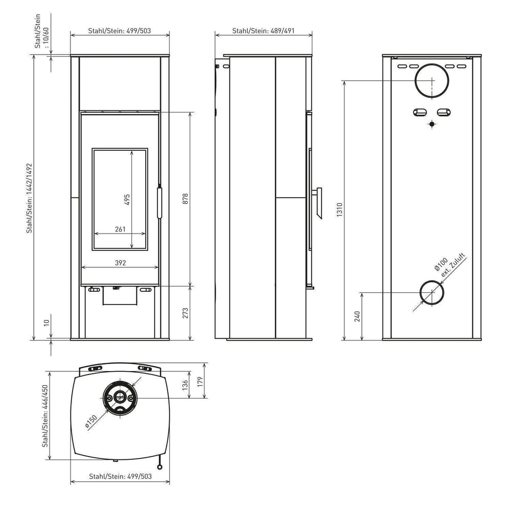 - Przyłącze przewodu kominowego: 150 mm (góra, tył)