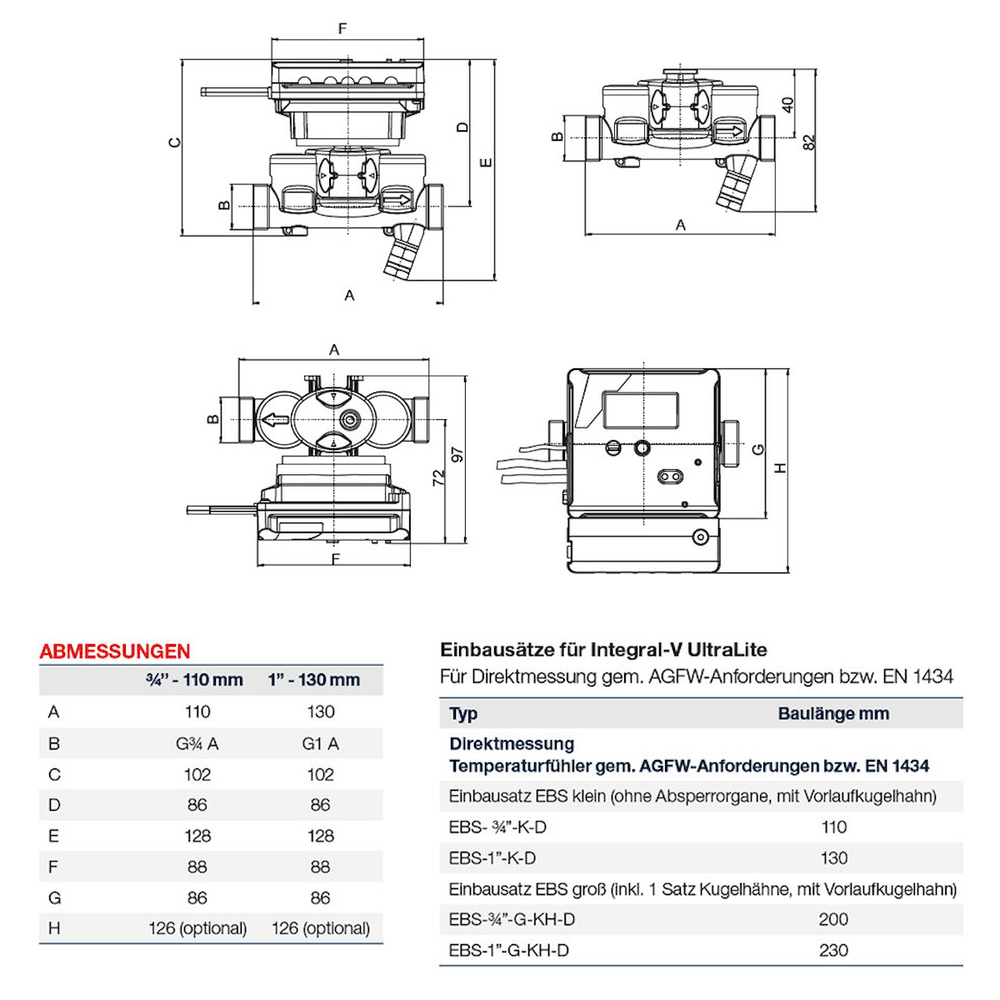 - 1x Kompaktný merač tepla 1 " Allmess Ultra-Lite qp 2.5-15-130 TF 5.2-1.6m/Cbs
