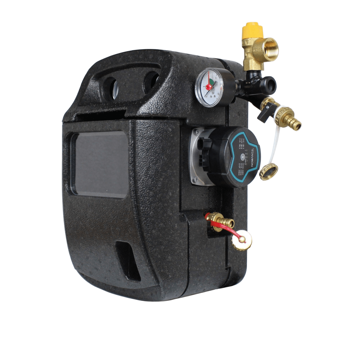 Zasnova omogoča tudi fleksibilen priključek za ekspanzijsko posodo, integrirani solarni varnostni ventil in manometer pa zagotavljata varno in neprekinjeno delovanje. Stranska odprtina spodbuja tudi učinkovito hlajenje črpalke, kar je še posebej koristno med neprekinjenim delovanjem.
