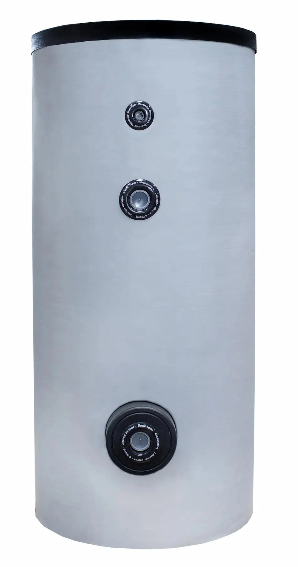 [Redigera z.B. Solsystem, värmepump, panna eller valfritt elvärmeelement.Värmeisoleringen i lagringstanken består av ett lager av CFC-fritt polyuretan styvt skum och ett utbytbart lager av PVC-mantel.